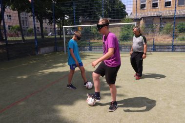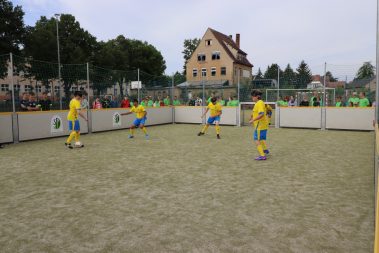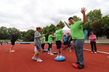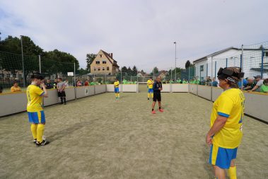 Nach einer gemeinsamen tänzerischen Erwärmung wurde durch die Blindenfußballer von LOK Leipzig demonstriert, wie mit dem Blindenfußball gespielt wird. Anschließend fanden Fußballspiele im Soccercourt statt. Nebenan gab es die Möglichkeit, Rollstuhlbasketball zu spielen oder einen Parcours mit einem Rollstuhl zu bewältigen.
