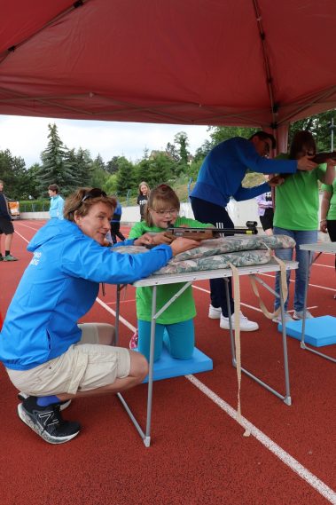 Aber das war noch längst nicht alles. Ein Klettermobil und eine Hüpfburg wurden gern genutzt und es gab eine Vielzahl spannender Sportstationen. Unter anderem Zielwerfen, Weitwurf, Weitsprung oder ein Hindernisparcours, sowie eine Balancierstation. Bei dem Biathlonsimulator schlüpften die Sportler kurz in die Wintersaison und probierten sich am Zielschießen mit dem Lasergewehr.
