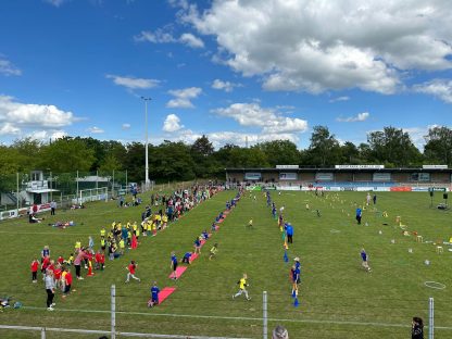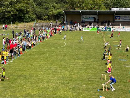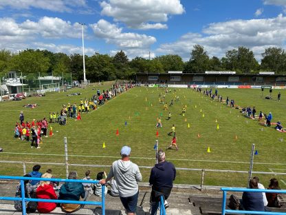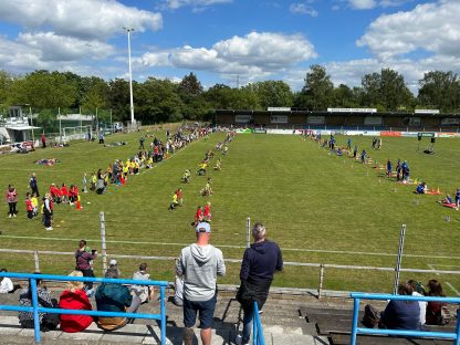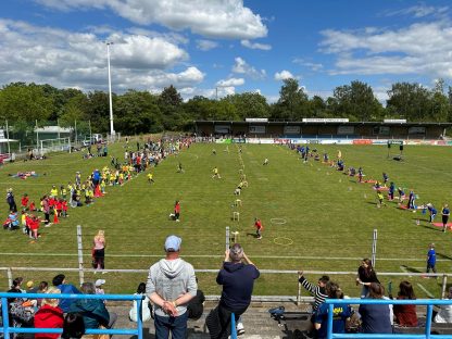 Es waren 14 Kindertagesstätten mit rund 200 Vorschülern dabei, die in 21 Staffeln jeweils 10 Staffelspiele absolvieren mussten. Diese bestanden aus einer Laufstrecke, auf der in jeder Runde eine andere Aufgabe erledigt werden musste. Zum Beispiel mussten Kegel im Slalom durchlaufen oder Säckchen in einen Zielsektor geworfen werden. Auf den Zuschauerrängen im Sportpark Camillo Ugi schauten Eltern, Großeltern, Geschwister und Freunde gespannt zu und feuerten die Kids tatkräftig an. Die Entscheidung der ersten 3 Plätze blieb spannend und entschied sich erst mit dem letzten Lauf.